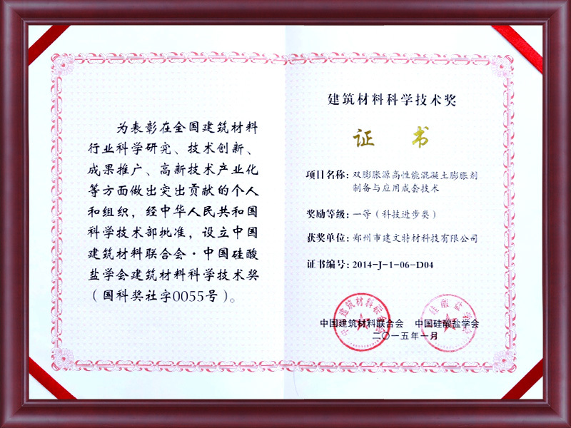 国家建筑材料科学进步一等奖