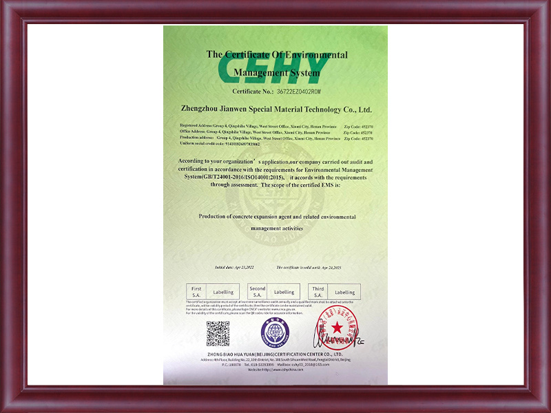 环境管理体系认证证书